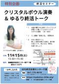 公開日:2025年10月21日社会教育・生涯学習の推進特定非営利活動法人 終活支援センター千葉【S0703】特別企画 終活セミナー 「クリスタルボウル演奏 & ゆるり終活トーク」開催日:2025年11月15日(土)