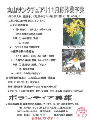 【証明書対象】丸山サンクチュアリ11月度作業予定・ボランティア募集募集終了