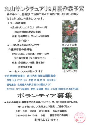 【証明書対象】丸山サンクチュアリ 9月度作業予定・ボランティア募集募集終了