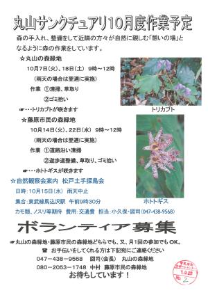 【証明書対象】丸山サンクチュアリ 10月度作業予定・ボランティア募集募集終了