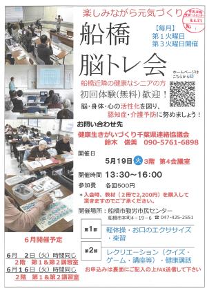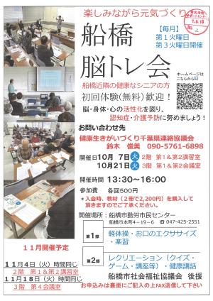 【令和6年度 主な活動内容・実施時期】 ◎定例 「船橋脳トレ会」開催:毎月第1・3火曜...