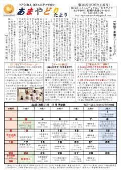 公開日:2025年10月20日保健、医療、介護、福祉の増進特定非営利活動法人 コミュニティサロン・あまやどり【S0038】あまやどりたより2025年11月号を発行しました