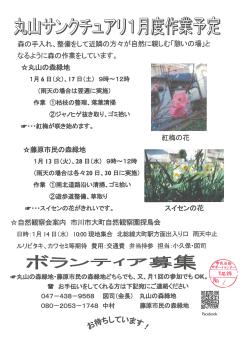 公開日:2026年01月05日環境の保全・美化丸山サンクチュアリ【S0213】丸山サンクチュアリ1月度作業予定開催日:2026年01月06日(火)、17日(土)、13日(火)、28日(水)
