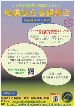 ホタルが飛び交う船橋にしたい!! 船橋ほたる観察会 会員募集のご案内
