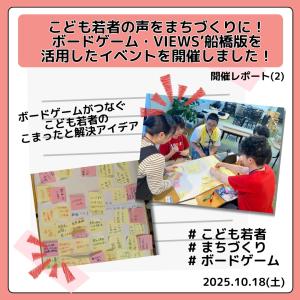 船橋市内在住・在学の「中学生」を対象に、ボードゲームを通して、船橋を知り、困りごとへの解決策を考える...