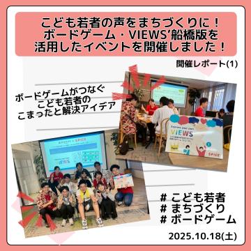 VIEWSは、自分の住む地域のことを知り、実際にこども若者からでた困りごとに対する解決アイデアをみんなで考えるボードゲームです🎲これまでSpiceさんは千葉市・墨田区版を作成していたそうで、今回かけわたしとコラボしていただき、船橋版の作成に取り組みました。