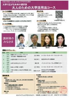 公開日:2025年11月13日船橋市からのお知らせ船橋市役所 市民協働課【船橋市】令和7年度ふなばし市民大学校特別講座 大人のための大学活用法コース【コースの概要】